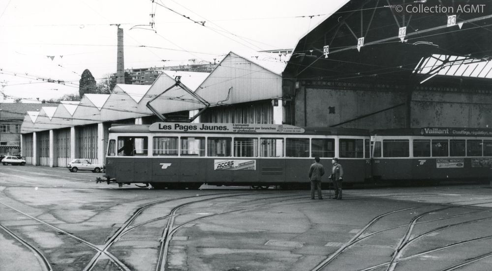 3141(494.42)_TPG_1988-47.jpgImage JpegUn convoi TPG formé de l'automotrice 717 et de la remorque 322 manoeuvre sur le triangle de retournement du dépôt de la Jonction / Jeremy Wiseman