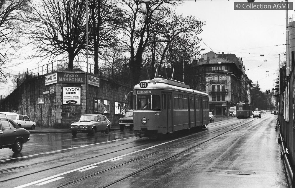 3141(494.42)_TPG_1988-26_d.jpgImage JpegAssurant une course de formation du personnel, l'automotrice Ce 4/6 795 de la CGTE, rachetée d'occasion à Aix-la-Chapelle, descend la route de Chêne et passe à la hauteur de la gare des Eaux-Vives / Jeremy Wiseman