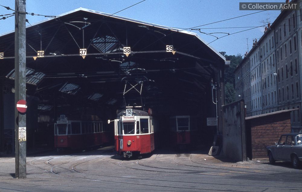PermalinkPermalinkL'automotrice 66 de la CGTE qui va prendre son service sur la ligne 12 sort d'une halle du dépôt de la Jonction / Jeremy Wiseman