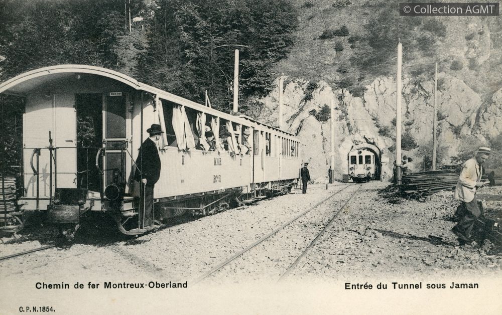 [Compagnie] MGlIndex. décimale : 4341 Chemin de fer interurbain et vicinal - véhicule - service régulier, transport de voyageur Chemin de fer électrique Montreux Glion : arrivée à Glion [document graphique à deux dimensions] . - Neuchâtel : Phototypie, [ca 1909] . - 1 carte postale : colorisée ; 9 x 14 cm.