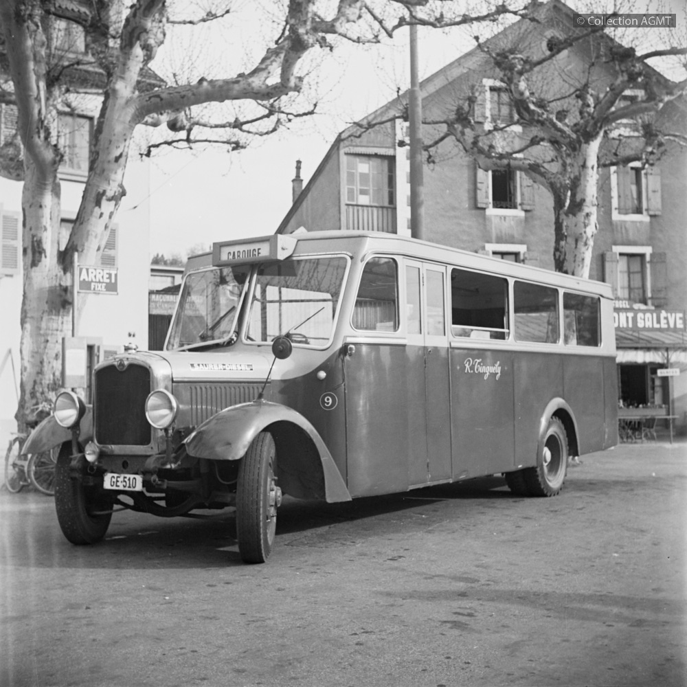 [Compagnie] JS (Jura-Salève)Index. décimale : 4441 Bus interurbain et vicinal - véhicule - service régulier, transport de voyageur Carouge, place du Rondeau : l'autobus Saurer no 9 du JS attend l'heure du départ pour Veyrier [document graphique à deux dimensions] / Willy Boegli (1916-1994), Photographe . - [Petit-Lancy : M. Kohler], [2016] . - 1 photo : noir et blanc ; 11 x 11 cm.