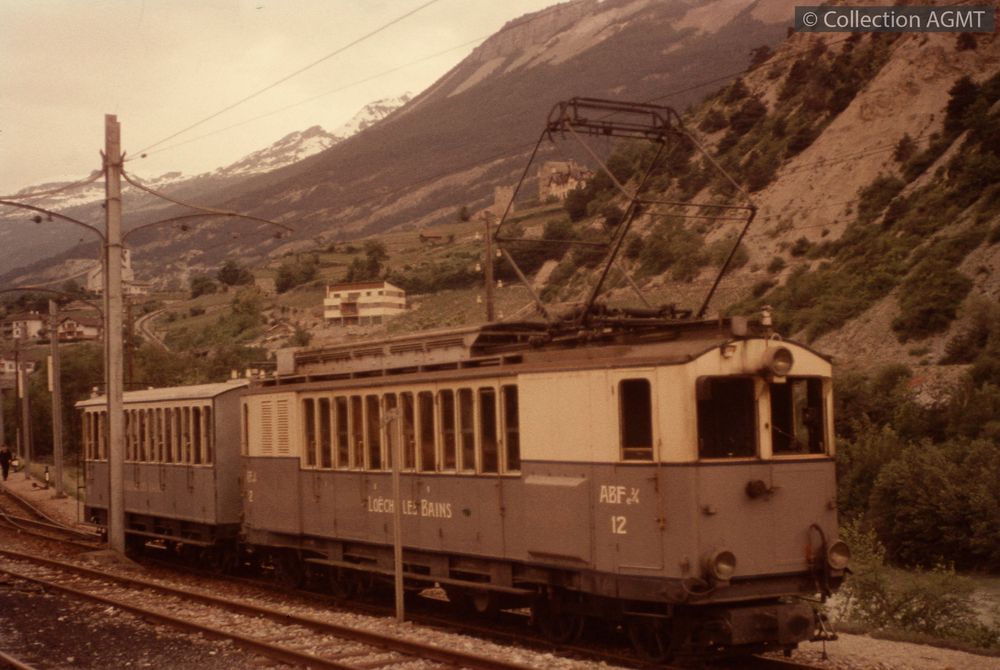 PermalinkUn convoi du LLB formé de l'automotrice ABFeh 2/4 12 et d'une voiture manoeuvre en gare de Loèche CFF / François Chapuis