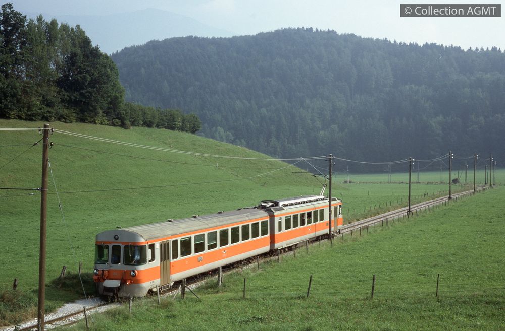 Code-barres Cote Support Localisation Section Disponibilité 6700013137 4341(494.41) GFM 1977/02 Photographie Bachet Photographies Disponible Mené par l'automotrice Be 4/4 115, un convoi des GFM quitte Gruyères en direction de Bulle / Alain Gavillet