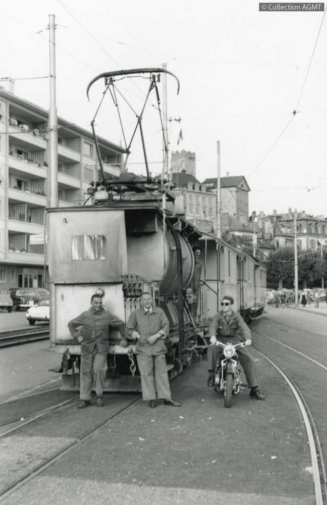 [Compagnie] TN (Neuchâtel)Index. décimale : 3144 Tramway et métro léger urbain - véhicule - service des travaux, de la voie Devant le dépôt TN de l'Evole, des membres du personnel posent devant l'arroseuse Xe 2/2 301 qui assure la manoeuvre de remorqes à voyageurs [document graphique à deux dimensions] / Jeremy Wiseman (1933-2022), Photographe . - [S.l.] : [s.n.], [ca 1980] . - 1 photographie : noir et blanc ; 15 x 10 cm.