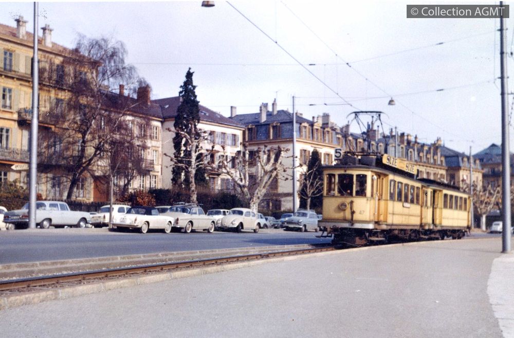 4141(494.43)_Tn_1963-10.jpgImage JpegLe convoi ANAT formé de l'automotrice 73 et de la remorque 1 attend ses voyageurs au terminus de la place Pury / Jeremy Wiseman
