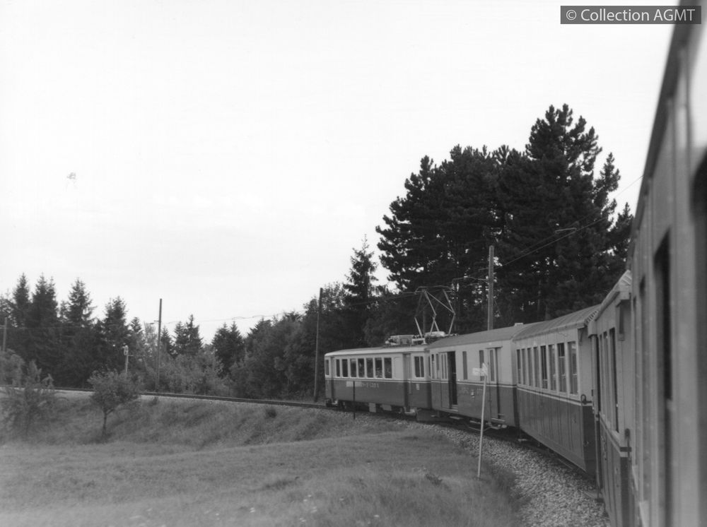 PermalinkPermalinkPermalinkVue depuis la fenêtre de la dernière voiture d'un convoi de l'YSteC démarrant de Six-Fontaines en direction d'Yverdon / Jacques Bazin