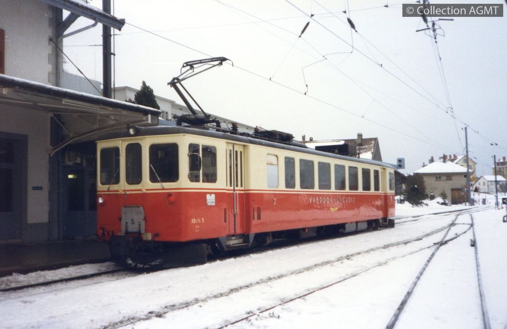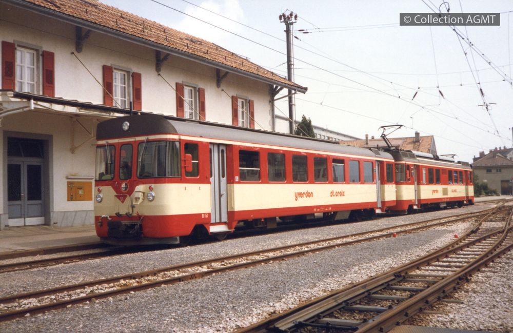 4341(494.45)_YSteC_1989-01.jpgImage JpegUn convoi de l'YSteC, formé par les deux automotrices ABe 4/4 11 et 12, attend en gare de Ste-Croix l'heure du départ pour Yverdon / Gaston Guignard