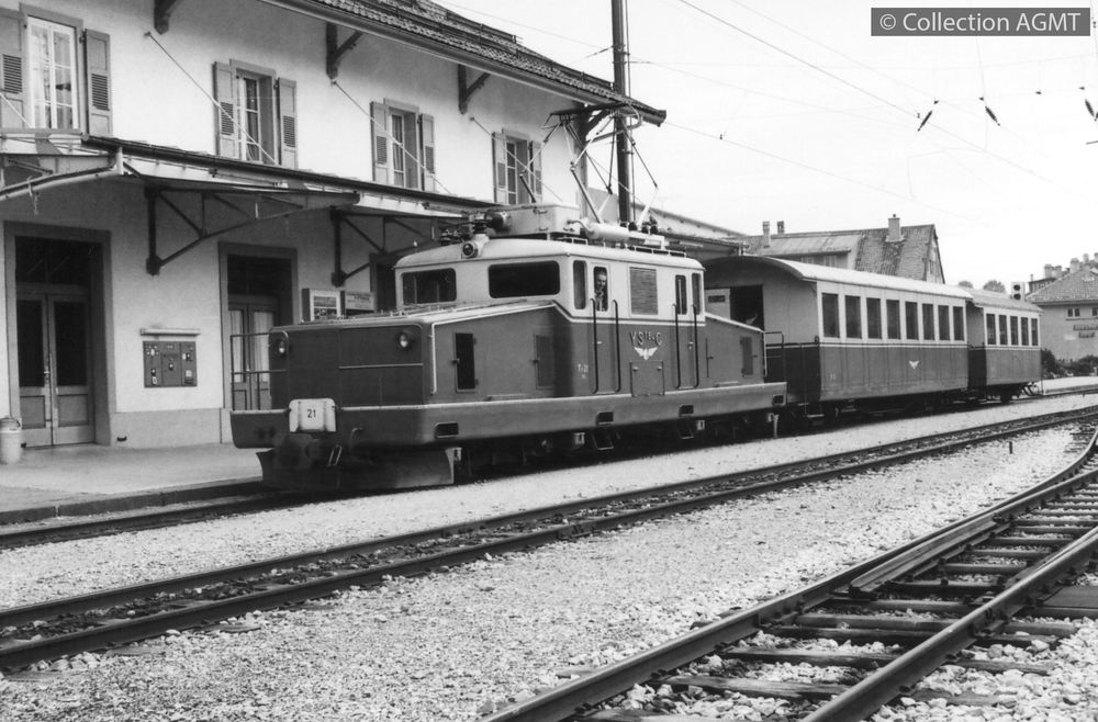 PermalinkPermalinkUne rame réversible de l'YSteC, composée de la Be 4/4 3 et de la voiture pilote Bt 51 attend, en gare de Ste-Croix, l'heure du départ pour Yverdon / Gaston Guignard