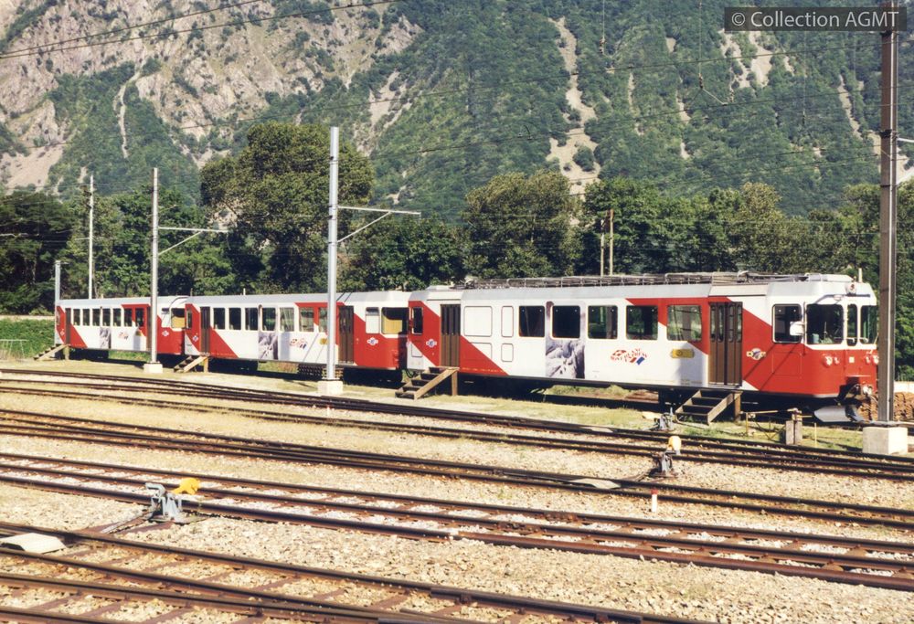 PermalinkPermalinkLa rame à grande capacité du MC, formée de l'automotrice BDeh 4/4 501, de la voiture B4 701 et de la voiture pilote Bt4 601, stationne au dépôt de Vernayaz / Gaston Guignard