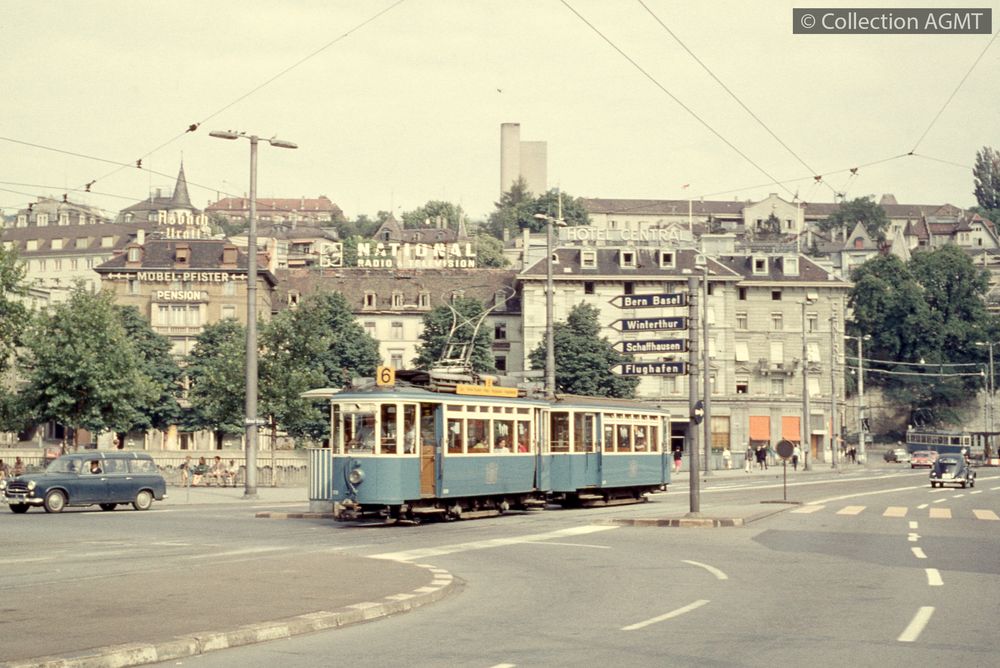 PermalinkUn convoi VBZ de la ligne 6, formé d'une automotrice et de la remorque 657, s'engage sur le Bahnhofbruecke / Jeremy Wiseman