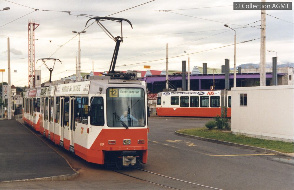 3149(494.42)_TPG_1988-48.jpgImage JpegAssurant une course spéciale à destination du dépôt du Bachet, un convoi TPG formé des automotrices 810 et 812 marque l'arrêt au Bachet / Martin Schweizer