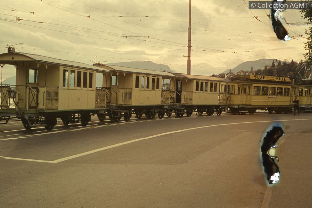 Code-barres Cote Support Localisation Section Disponibilité 6700009429 4141(494.43) TN 1963/05 Photographie Bachet Photographies Disponible Un convoi TN de la ligne 5 à destination de Boudry, renforcé à l'occasion de la Fête des vendanges, passe à la hauteur de la voie d'entrée au dépôt de l'Evole / Jeremy Wiseman