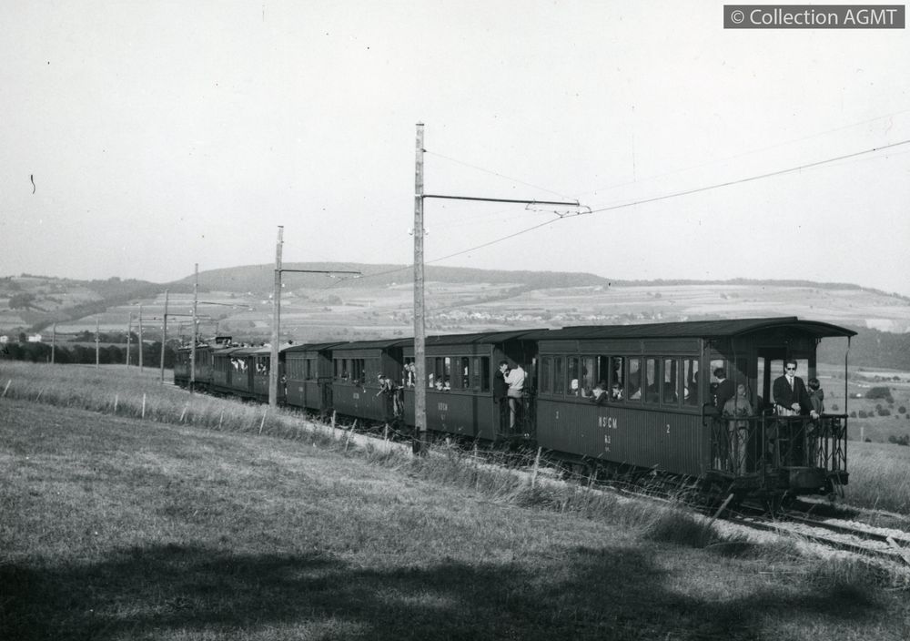 PermalinkUn long convoi du NStCM, formé des automotrices 1 et 3 et de 7 voitures, quitte la gare d'Arzier pour Nyon lors des festivités du 50ème anniversaire de la ligne / Jeremy Wiseman