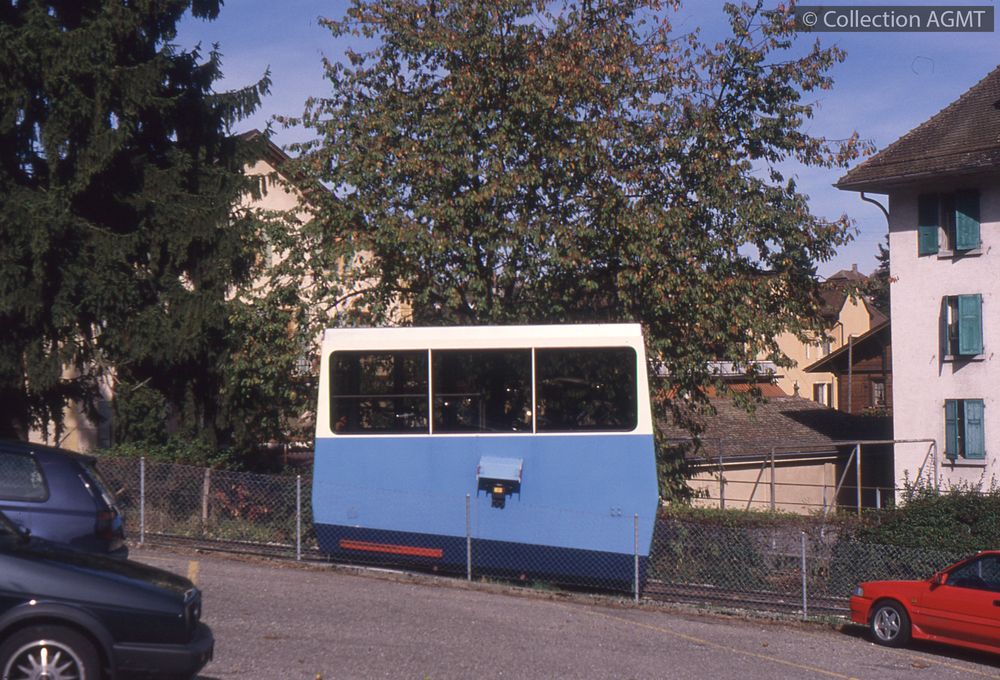 PermalinkVue en contre-plongée de la voiture 2 du funiculaire Cossonay-Gare - Cossonay-Ville / Gaston Guignard
