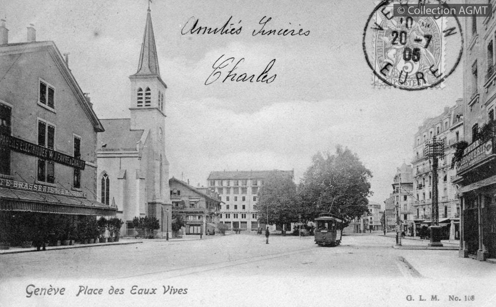 Genève : place des Eaux-Vives [document graphique à deux dimensions] . - Montreux : Gaspard Lips, [ca 1904] . - 1 carte postale : noir et blanc ; 9 x 14 cm. - (GLM; 108) . Langues : Français (fre)