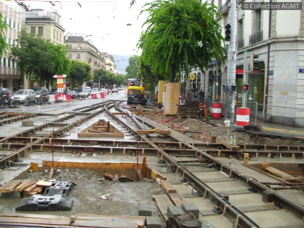 Code-barres Cote Support Localisation Section Disponibilité 6700008701 3141(494.42) CGTE 1945/08 X1 Photographie Bachet Photographies Disponible 6700019396 3141(494.42) CGTE 1945/08 X2 Photographie Bachet Photographies Disponible Au bas de la rue de la Corraterie, les croisements entre les voies de la place Bel-Air et celles de la rue du Stand sont en cours de pose / Cédric Noir
