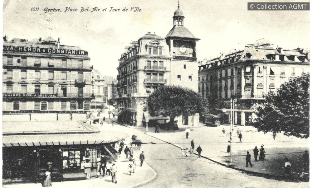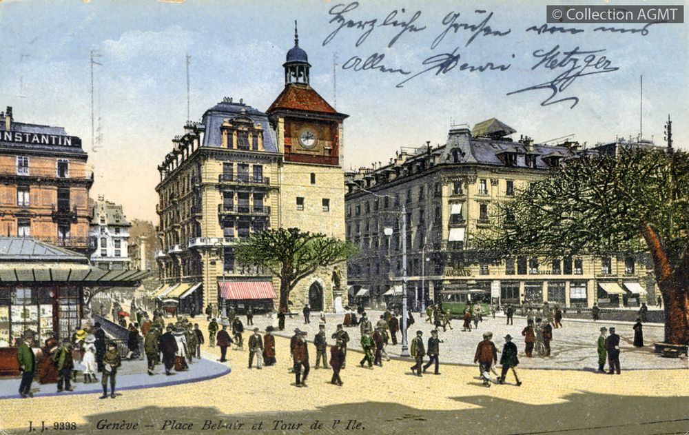 Achetée 10 Euros sur Delcampe en juin 2014, a circulé en avril 1904.Genève : place Bel-Air et maison des Trois-Rois [document graphique à deux dimensions] . - Genève : P. Teilliet, [ca 1901] . - 1 carte postale : couleur ; 9 x 14 cm. - (P. Teilliet; 15) .