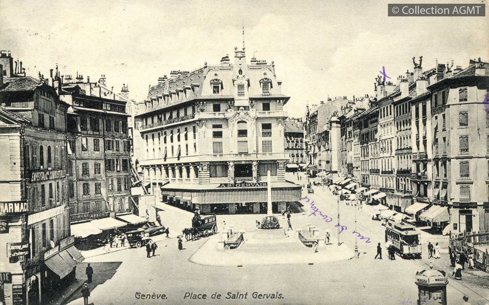 Titre : Genève : place St-Gervais Type de document : document graphique à deux dimensions Editeur : Neuchâtel : Phototypie Année de publication : [ca 1910] Importance : 1 carte postale Présentation : noir et blanc Format : 10 x 14 cm Langues : Français (fre) Catégories : [Mots-clefs] 26-45