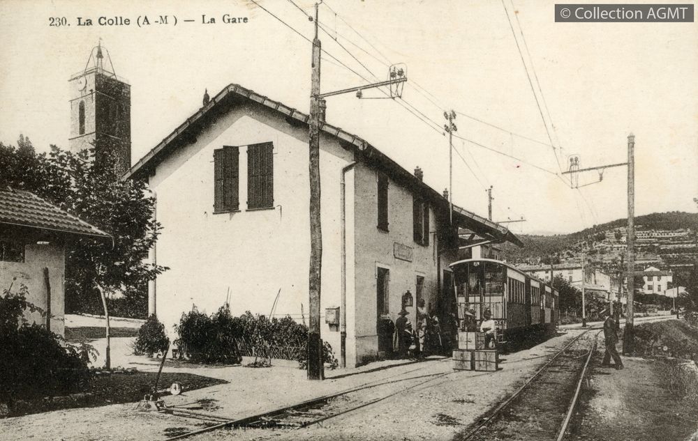 [Ligne] VenceIndex. décimale : 4141 Tramway et métro léger interurbain et vicinal - véhicule - service régulier, transport de voyageur La Colle (A.-M.) : la gare [document graphique à deux dimensions] . - [S.l.] : [s.n.], [ca 1912] . - 1 carte postale : noir et blanc ; 9 x 14 cm.