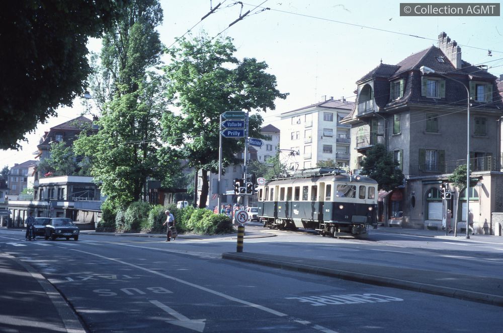 PermalinkPermalinkL'automotrice BDe 4/4 23 du LEB qui circule à destination de Lausanne-Chauderon arrive au carrefour entre l'avenue d'Echallens et la route de Prilly / Jeremy Wiseman