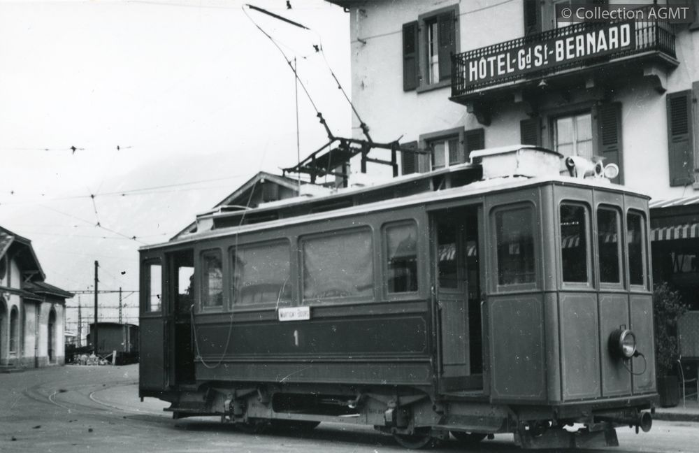 PermalinkPermalinkDevant la gare de Martigny, l'automotrice no 1 du tramway attend l'heure du départ pour le Bourg / Jacques Bazin