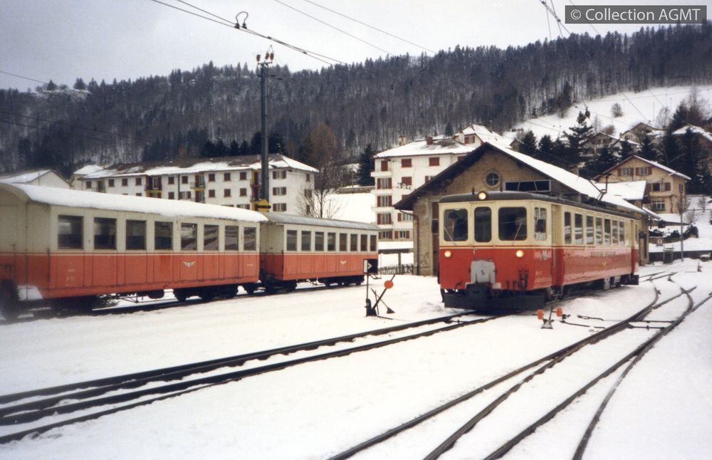 4341(494.45)_YSteC_1963-02.jpgImage Jpeg PermalinkPermalinkL'automotrice Be 4/4 5 de l'YSteC, encore immatriculée ABe 4/4 5 malgré la suppression de la première classe, attend en gare d'Yverdon l'heure du départ pour Ste-Croix / Gaston Guignard
