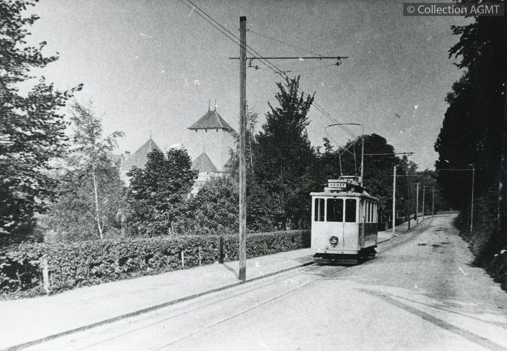 [Année] 1916Index. décimale : 4141 Tramway et métro léger interurbain et vicinal - véhicule - service régulier, transport de voyageur Circulant en direction de Vevey, une automotrice du VMCV passe à la hauteur du château de Chillon [document graphique à deux dimensions] . - [S.l.] : [s.n.], [ca 1970] . - 1 photographie : noir et blanc ; 11 x 15 cm.