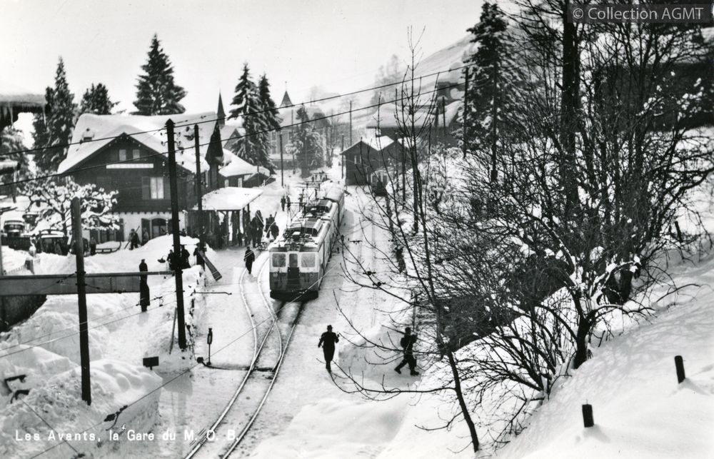 [Compagnie] MOBIndex. décimale : 4341 Chemin de fer interurbain et vicinal - véhicule - service régulier, transport de voyageur Les Avants, la gare du MOB [document graphique à deux dimensions] . - Les Avants : Edition Buffet de la Gare, [ca 1950] . - 1 carte postale : noir et blanc ; 9 x 14 cm. - (Buffet de la Gare; o 013015) .