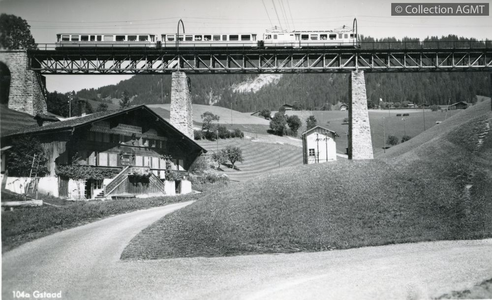 Titre de série : 100 Jahre Schweizer-Bahnen Titre : Montreux-Oberland-Bahn : Leichttriebwagen auf der Gardial-Bruecke Type de document : document graphique à deux dimensions Editeur : Zuerich-Enge : Beringer & Pampaluchi Année de publication : [ca 1947] Importance : 1 carte postale Présentation : noir et blanc Format : 14 x 10 cm Langues : Allemand (ger) Catégories : [Mots-clefs] 3001-3004