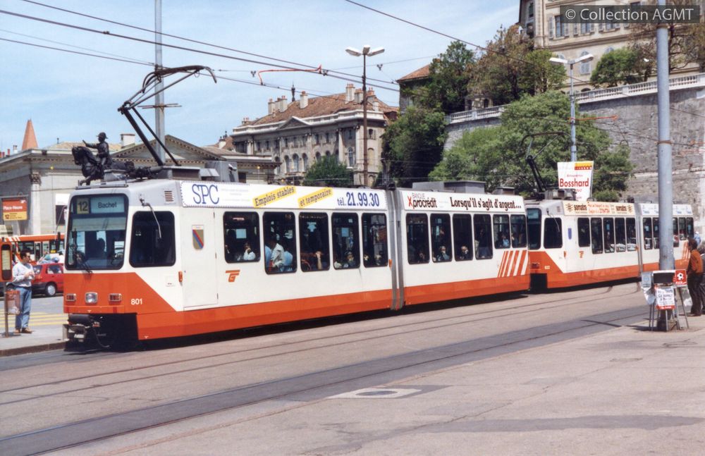 3541(494.42)_CGTE_1976-01.jpgImage JpegUn convoi TPG de la ligne 12 à destination du Bachet, formé des automotrices 802 et 822, marque l'arrêt à la place Neuve / Richard J.S. Wiseman