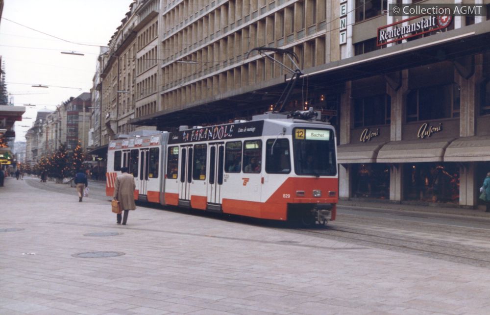 [Ligne] Ligne 12Index. décimale : 3141 Tramway et métro léger urbain - véhicule - service régulier, transport de voyageur La 829, en provenance de Moillesulaz, débouche sur la place du Rondeau à Carouge [document graphique à deux dimensions] / Eric Rahm, Photographe . - Genève : Association genevoise du musée des tramways, 1991 . - 1 photo : couleur ; 18 x 25 cm.