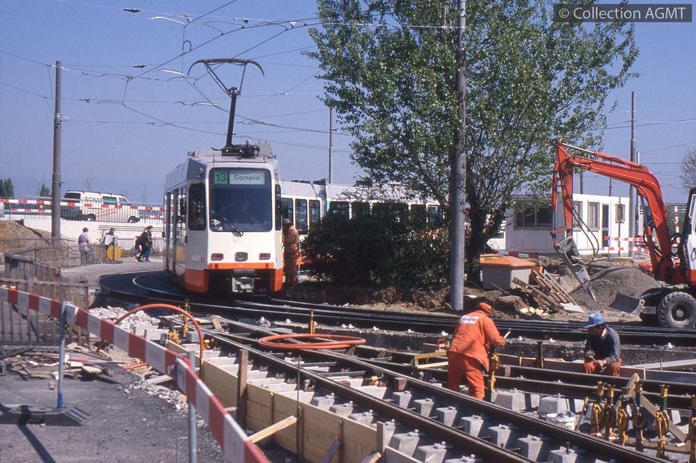 Affiner la recherche Interroger des sources externesAlors que la nouvelle double voie de l'arrêt de départ de Cornavin est déjà partiellement posée, un véhicule de la ligne 13 attend le départ sur l'ancienne voie / Cédric Noir