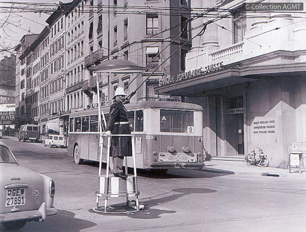 [Année] 1965Index. décimale : 3541 Trolleybus, gyrobus, véhicule bi-mode urbain - véhicule - service régulier, transport de voyageur Genève, place St-Gervais : le trolleybus 833 de la CGTE s'engage dans la rue de Coutance [document graphique à deux dimensions] . - [S.l.] : [s.n.], [2020] . - 1 photographie : noir et blanc ; 10 x 13 cm.
