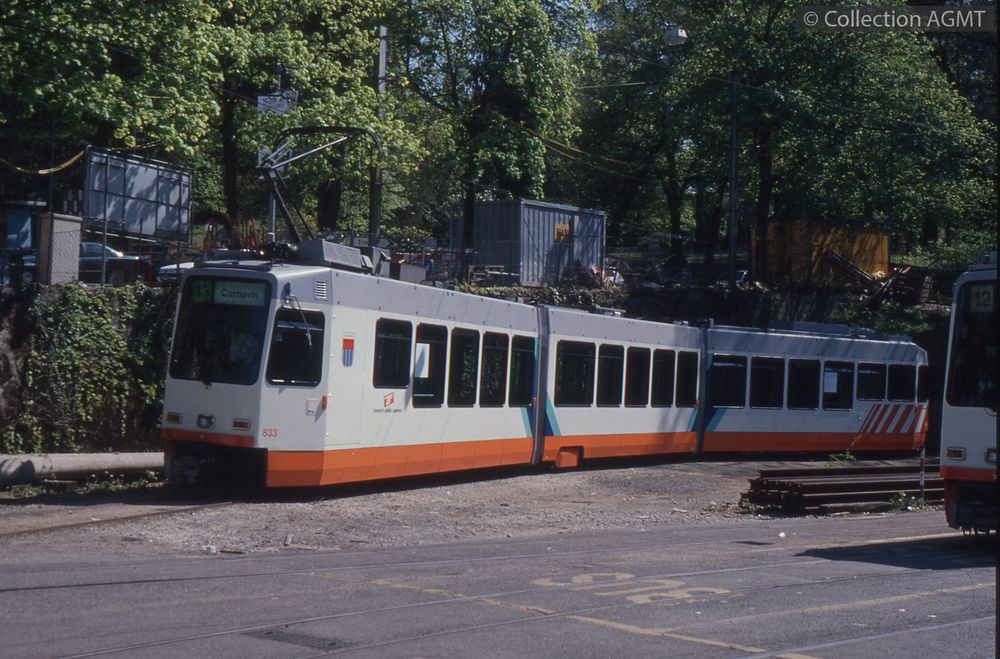 PermalinkEn service sur la ligne 13 à destination de Cornavin, l'automotrice Be 4/8 833 des TPG attend l'heure du départ dans la boucle de rebroussement du rondeau de Carouge / Jeremy Wiseman