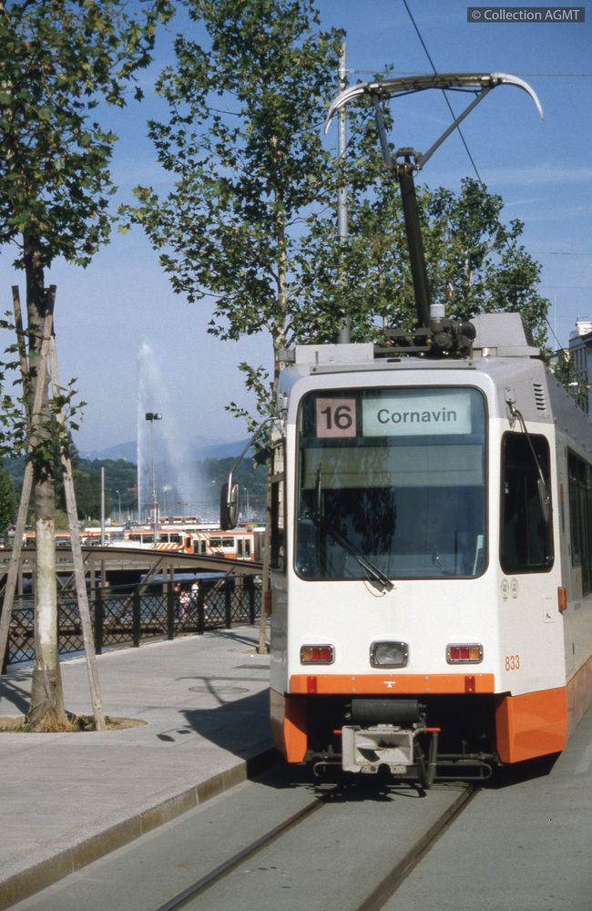 PermalinkEn service sur la ligne 16 à destination de Cornavin, l'automotrice 833 des TPG circule au quai de la Poste / Richard J.S. Wiseman