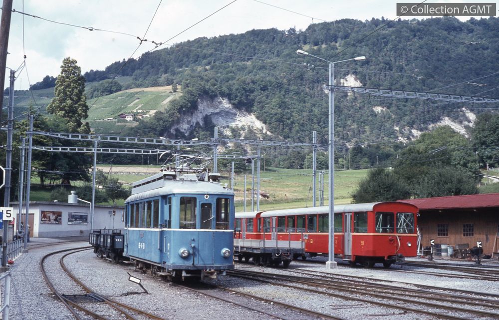 PermalinkPermalinkPermalinkL'automotrice Be 2/3 16 du BVB stationne sur la place de la gare de Bex, à côté de l'automotrice BFeh 2/4 26 / Jacques Bazin