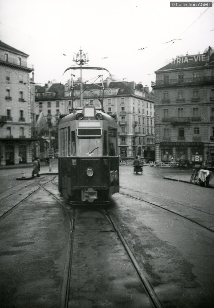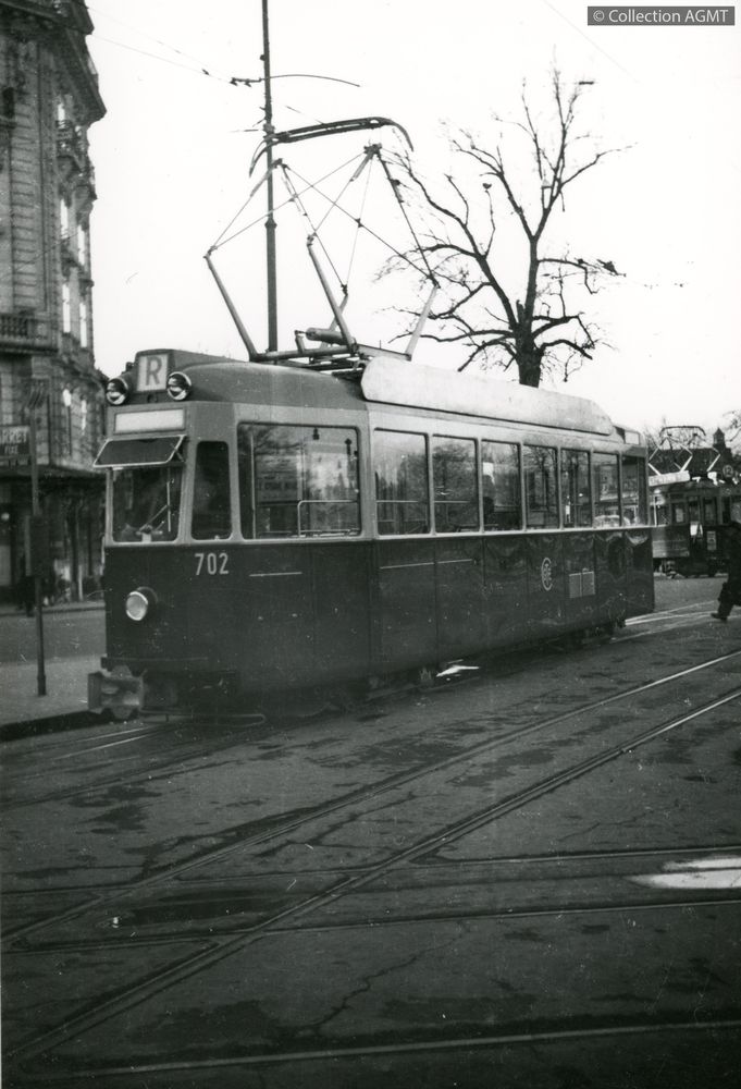 3149(494.42)_CGTE_1950-11.jpgImage JpegL'automotrice 702 de la CGTE, récemment livrée, est exposée sur les voies du terminus de Chantepoulet en compagnie de la remorque 301 / Christopher Michael Wiseman