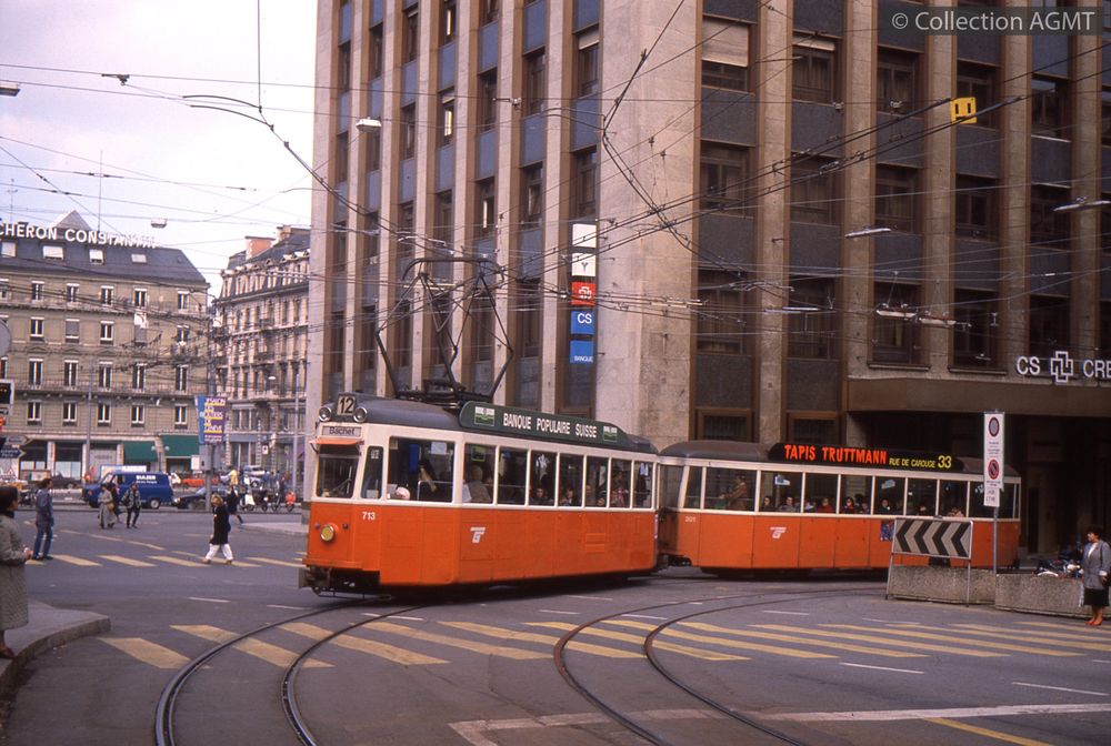 PermalinkUn convoi TPG de la ligne 12, formé de l'automotrice 713 et de la remorque 301, s'engage dnans la rue de la Corraterie en direction du Bachet / Jeremy Wiseman