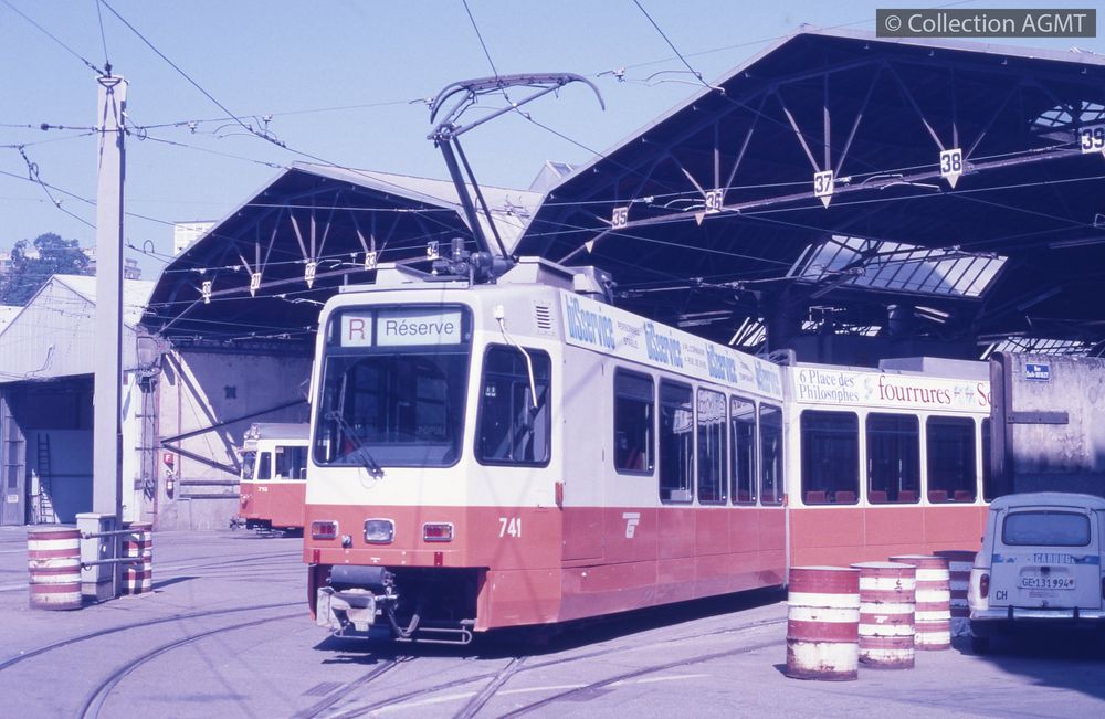 3141(494.42)_CGTE_1956-28.jpgImage JpegL'automotrice 741 des TPG, qui vient d'être livrée, va se garer sous une halle du dépôt de la Jonction / Richard J.S. Wiseman