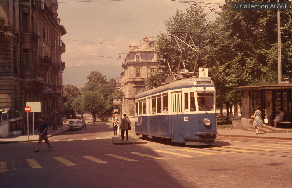 PermalinkEn service sur la ligne 1 de la CGTE, l'automotrice 102 ex-VBL, encore dans la livrée de cette compagnie, passe à la place Claparède / Jeremy Wiseman