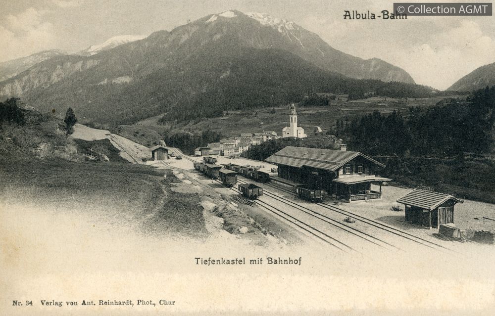 [Année] 1903Index. décimale : 4345 Chemin de fer interurbain et vicinal - véhicule - service marchandises, postal, des manœuvres Albula-Bahn : Tiefenkastel mit Bahnhof [document graphique à deux dimensions] / Ant. Reinhardt, Photographe . - Chur : Verlag von Ant. Reinhardt, [ca 1903] . - 1 carte postale : noir et blanc ; 9 x 14 cm. - (Ant. Reinhardt; 34) .