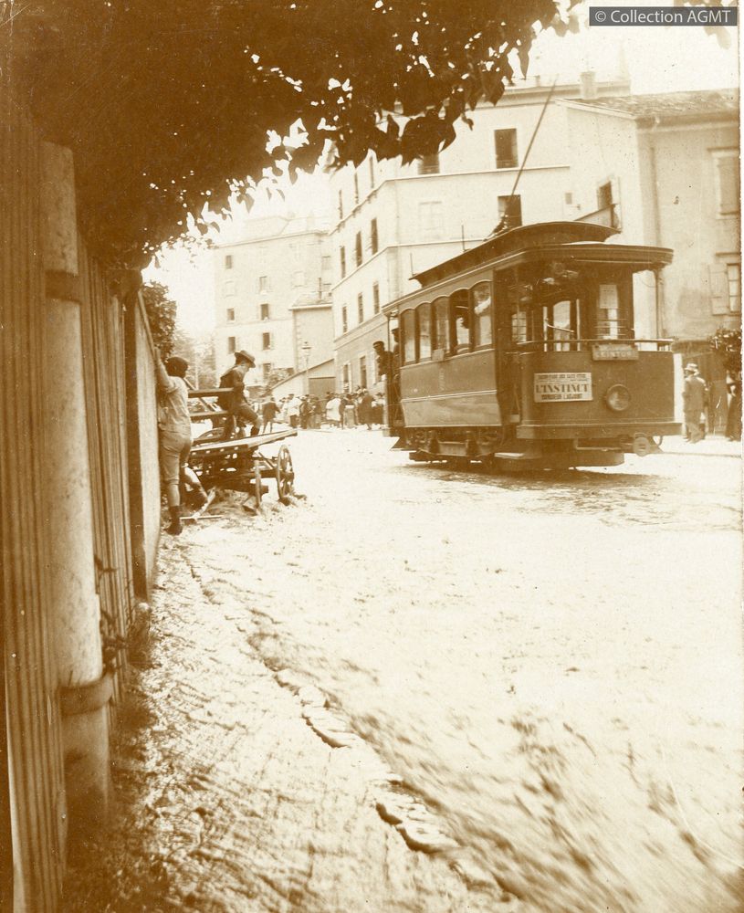[Compagnie] TN (Neuchâtel)Index. décimale : 4141 Tramway et métro léger interurbain et vicinal - véhicule - service régulier, transport de voyageur L'ancien terminus de Boudry vers 1903 : au premier plan, remorque C4 53 (plus tard 113), au fond, motrice de la série Ce 2/4 41-47 datant de 1902 [document graphique à deux dimensions] . - Neuchâtel : ANAT, [ca 1990] . - 1 photo : noir et blanc ; 11 x 15 cm.