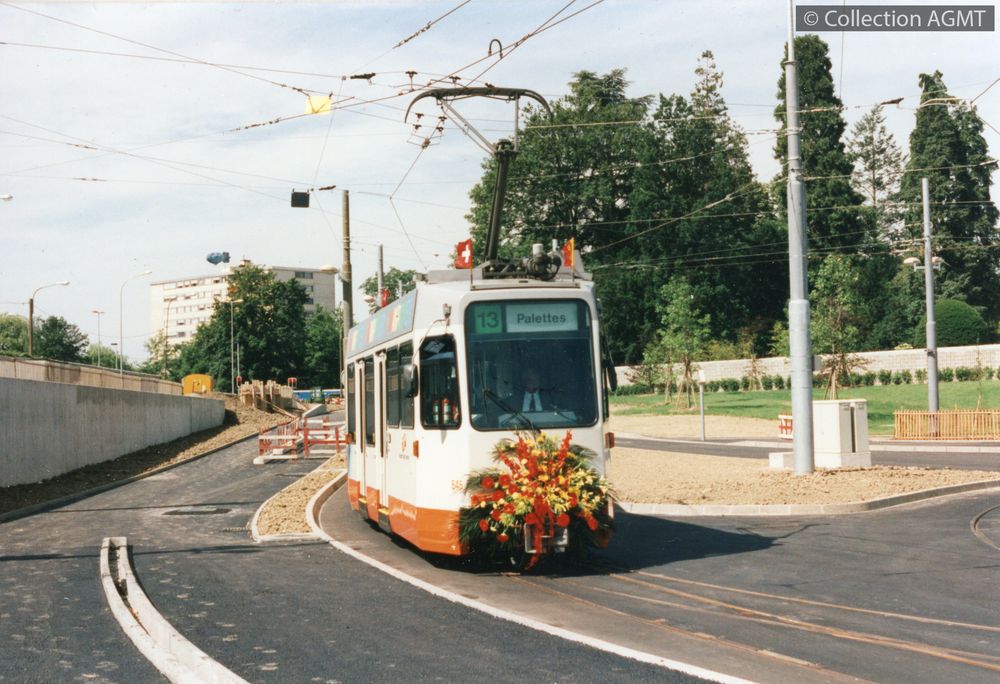 3148(494.42)_aGMT_2001-82_d.jpgImage JpegFleurie à l'occasion de l'inauguration du prolongement de la ligne 13 du Bachet aux Palettes, l'automotrice 845 des TPG arrive au Bachet en provenance des Palettes / Richard J.S. Wiseman